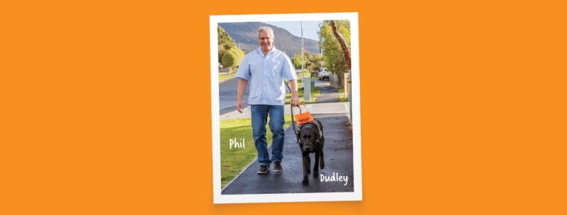 Over the years, Phil has reached out for help from Guide Dogs and VisAbility Tasmania and used every service, program and aid available.